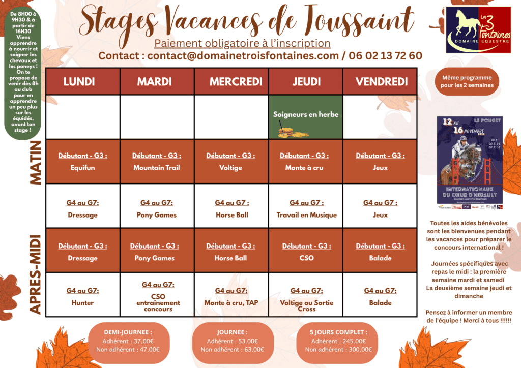 Le planning des vacances de la toussaint : un programme multidisciplinaire